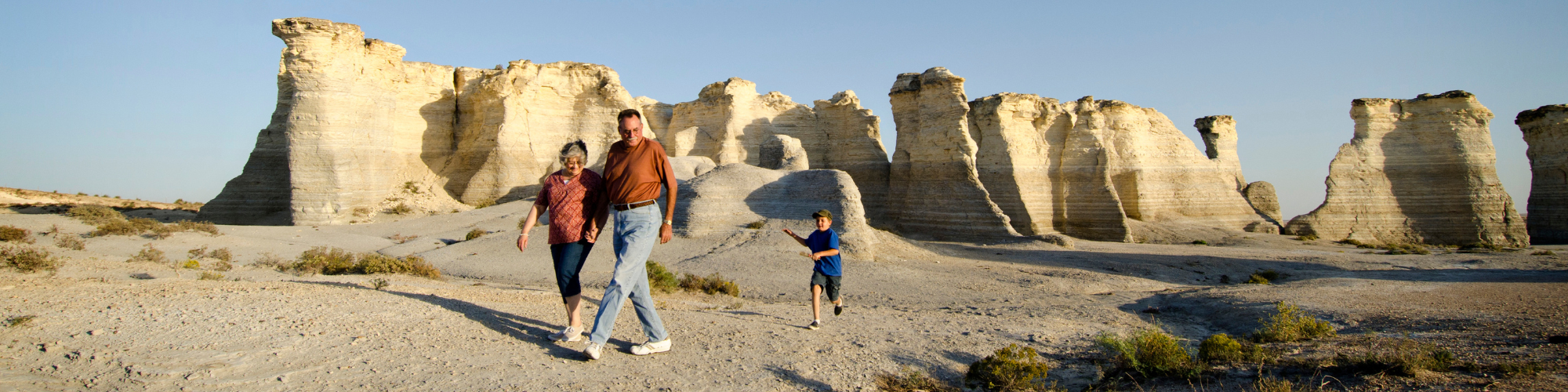 Visit a rugged landscape on the culturally and visually fascinating route known as the Western Vistas Historic Byway. Imagine an ancient sea that extended from the present day Gulf of Mexico to the Arctic Circle. When the water receded and erosion set in, the sea floor’s limestone layers became not only flat plains but oddly placed, shaped buttes, and other chalk formations. In western Kansas you will find the Wild, Wild West of legend, where American Indians hunted bison, pioneers trekked and cowboys roamed the vast and beautiful prairie – all attempting to eke out a living.