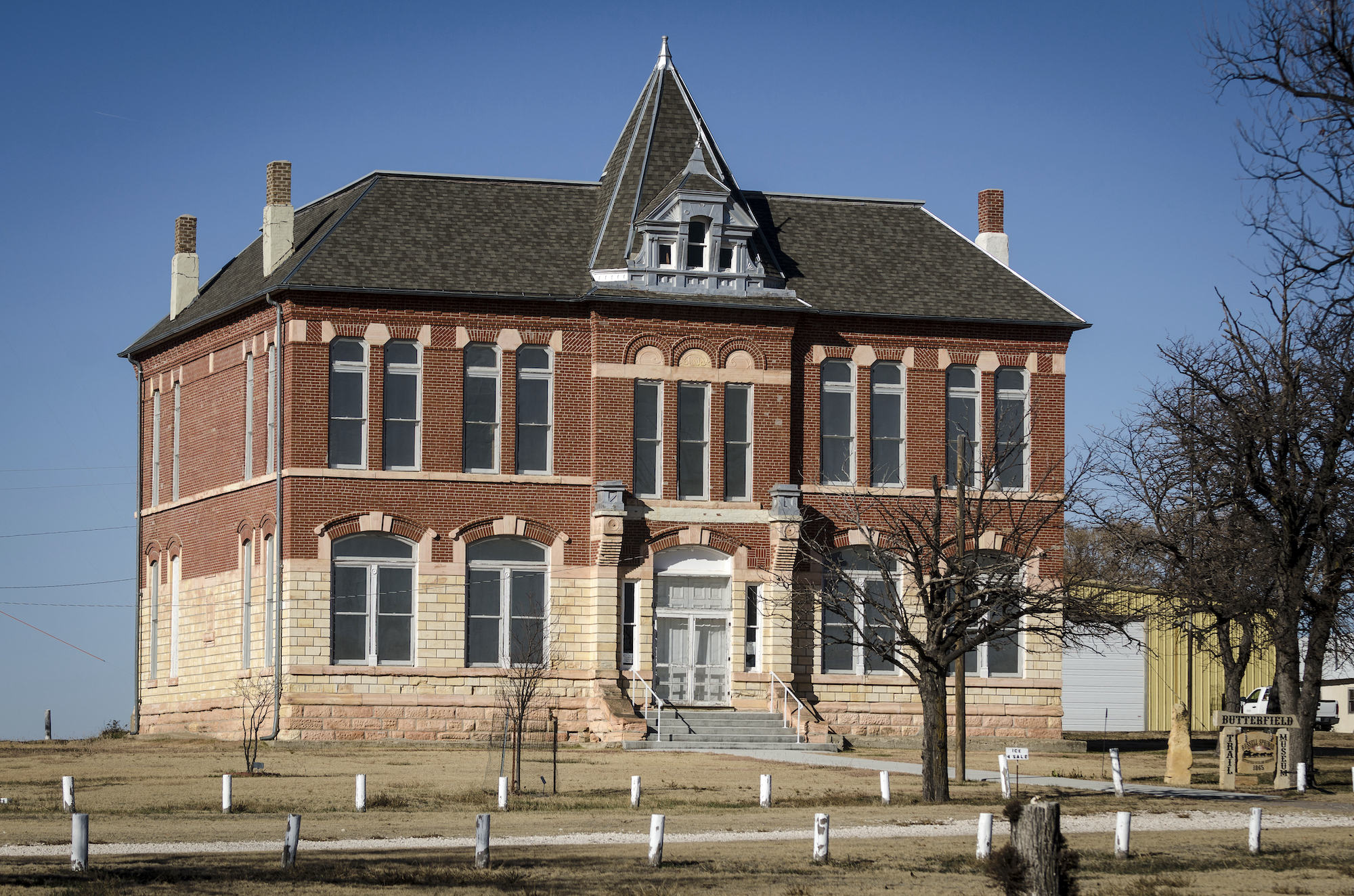 The Butterfield Trail Historical Museum (former Logan County Courthouse) building is a two-story, renaissance-style, rectangular structure of native stone and locally kilned brick, with a mansard roof. It is 60‘ long, 50‘ wide and 45‘ tall. It was constructed at a cost of $10,000 by The Town Company and presented to the county in 1887. The structure served as the seat of Logan County government from 1887-1963, and is currently owned by the City of Russell Springs and leased to the Butterfield Trail Association and Historical Society of Logan County, Inc. It houses the Butterfield Trail Historical Museum, offering general history, fossil, trail and settlement exhibits. It is the official repository of old county records and history and receives a small tax levy from Logan County for the preservation and maintenance of these records. The museum was dedicated in 1965 and is listed on the National Register of Historic Places. Funding from grants,donations and fund raising activities such as the annual Butterfield Trail Ride help keep the museum maintained and open to the public.