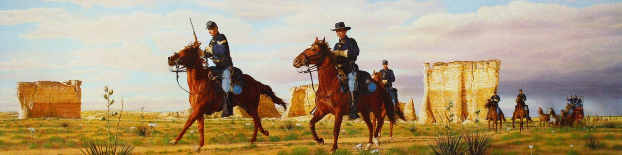 The Jerry Thomas Gallery and Collection not only features Jerry’s renowned Western artwork, but it also showcases his amazing Western Heritage Collection of guns, weapons, uniforms, memorabilia and artifacts from the Battle of the Little Bighorn, Native Americans, Civil War and Cowboy Trails, and The Battle of Punished Woman’s Fork. His collection has evolved over many years and is a testament to his passion for the history and love of the Old West. Many of these items have been used and featured in his incredible artwork which can be seen in the beautiful and spacious gallery that Jerry designed with attractive and distinctive Western and Native American architecture. The Jerry Thomas Gallery and Collection houses the finest and most extensive collection of artifacts and memorabilia from the last Native American and U.S. Military battle to take place in the State of Kansas, known as The Battle of Punished Woman’s Fork. On Sept. 27, 1878. Northern Cheyenne warriors, led by Chiefs Dull Knife and Little Wolf, defended their woman, children, and elderly in the sanctuary cave of Battle Canyon, while Lt. Col. William H. Lewis commanded the 4th U.S. Cavalry and 19th U.S. Infantry, in the attack. In the battle that in-sued, Lt. Col. Lewis was mortally wounded, becoming the last military officer to die in the Indian Wars in Kansas. The Northern Cheyenne eventually escaped and after a grueling 1200 mile trek, returned to their native homeland in Montana. The Jerry Thomas Gallery beautifully displays the ONLY KNOWN image and engraved, personal sword of Lt. Col. William H. Lewis, along with memorabilia and artifacts from those officers and personal friends who knew him. In the135 years since the battle, no image or memorabilia ever surfaced. The Jerry Thomas Gallery and Collection is proud to have these amazing, one of a kind, artifacts of Lt. Col. Lewis in its permanent collection. There are also Northern Cheyenne artifacts including an exquisitely beaded and fringed tobacco bag found at the battle by 4th U.S. Cavalry, 2nd Lt. Cornelius Gardener, adjutant to Lewis. The only known original map and details of the battle which were presented to Corporal Sharon C. McFadden for his heroic effort to save Lt. Col. Lewis in the battle are also beautifully showcased. The Collection of Jerry’s renowned artwork and Western heritage holds other surprises and is truly a wonderful and remarkable National Treasure.