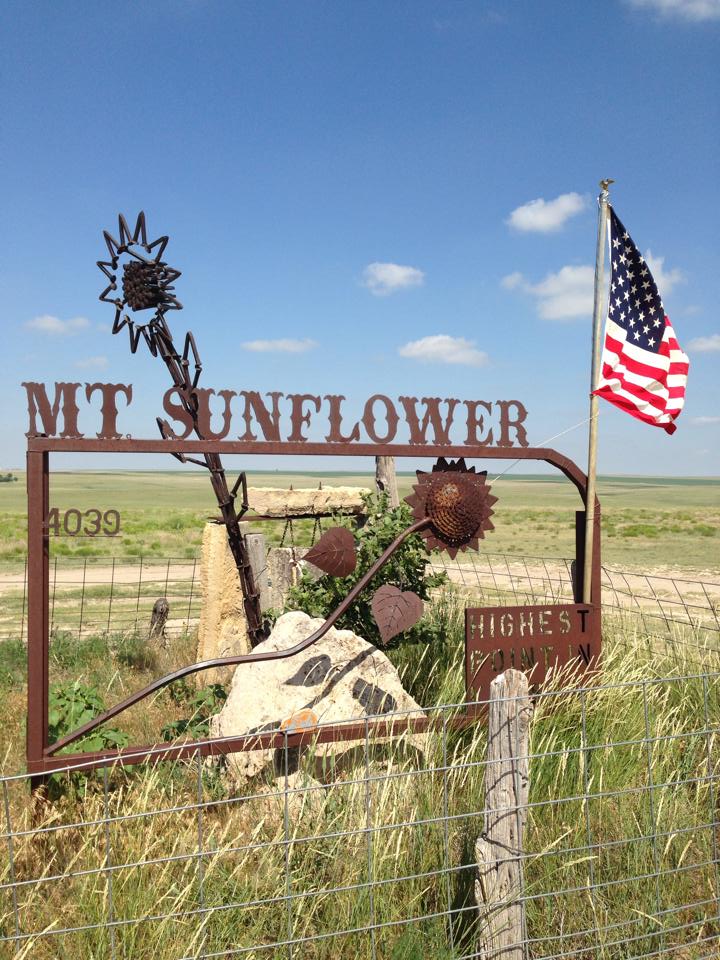 Mount Sunflower, although not a true mountain, is the highest point in the state of Kansas. At 4,039 feet (1,231 m), it is 3,300 feet (1,010 m) feet above the state’s topographic low point located in Montgomery County in Southeastern Kansas. Located in Wallace County, it is less than 1/2 of a mile (0.8 km) from the Colorado state border and close to the lowest point in Colorado.