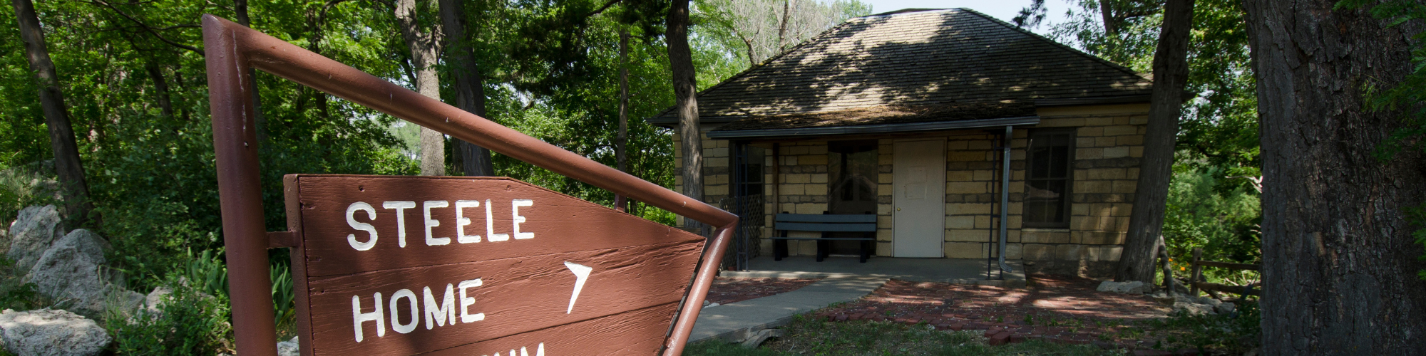 Herbert Steele built a home in 1893 for his family. It was a simple dugout, later updated to a four-room house using sandstone gathered from the surrounding bluffs. The Steele Home, now a museum site, preserved, much as it was one hundred years ago, and now serves to display the furnishings and tools used by early sesttlers.